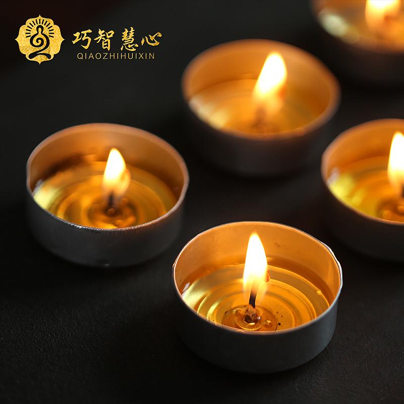 Pure natural ghee lamp smokeless 100 grain 4 hours knots aluminium shell ghee wax for the Buddha yellow Bodhi lamp