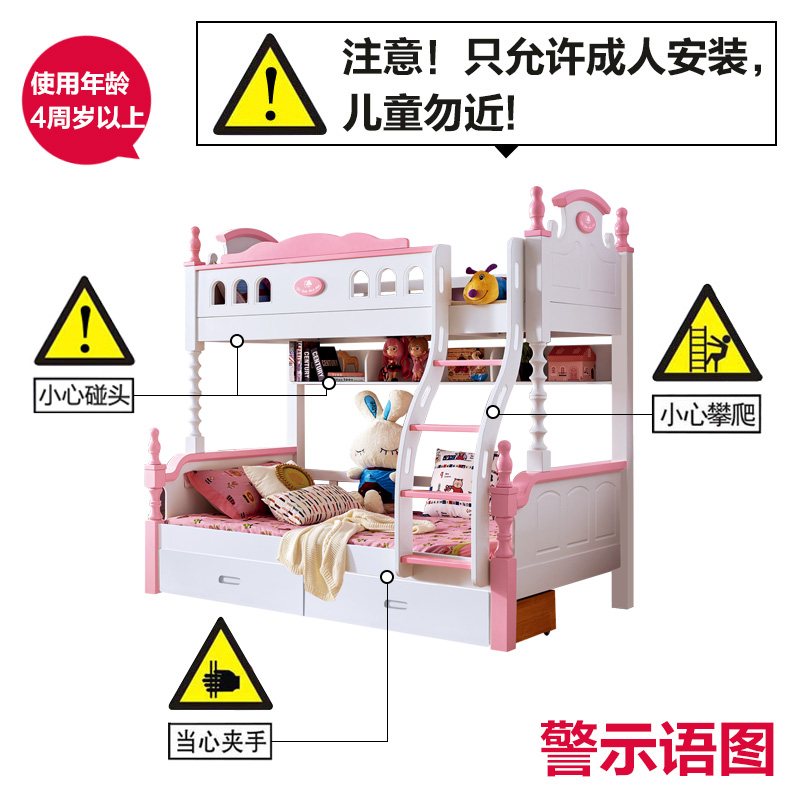 Bed of American Child Bed All-Solid Wood High and Low Bed Multifunctional Adult Maternal Bed