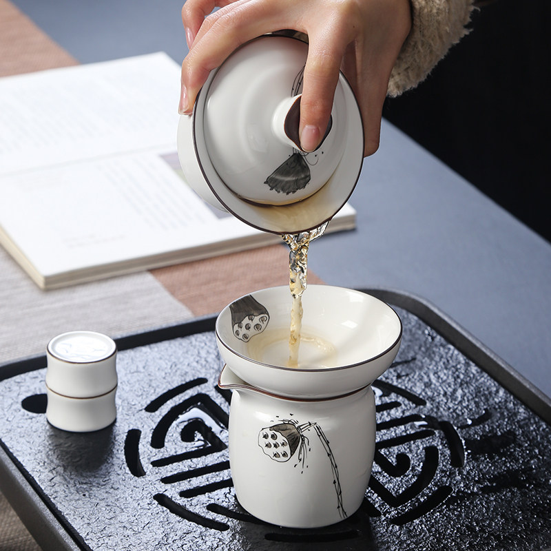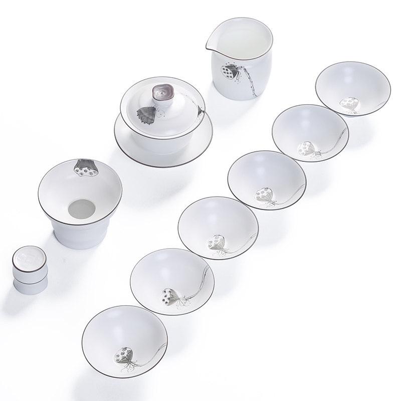 Jingdezhen tea set set household kung fu teacup hand-painted set cover bowl simple ceramic 6 people whole set gift box