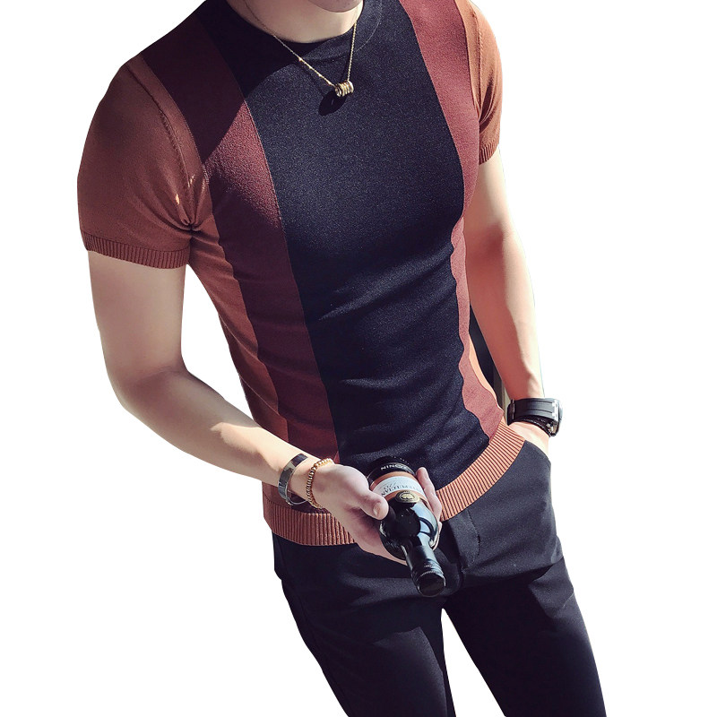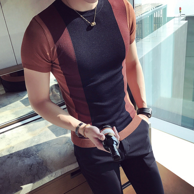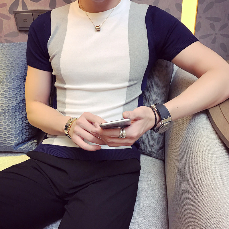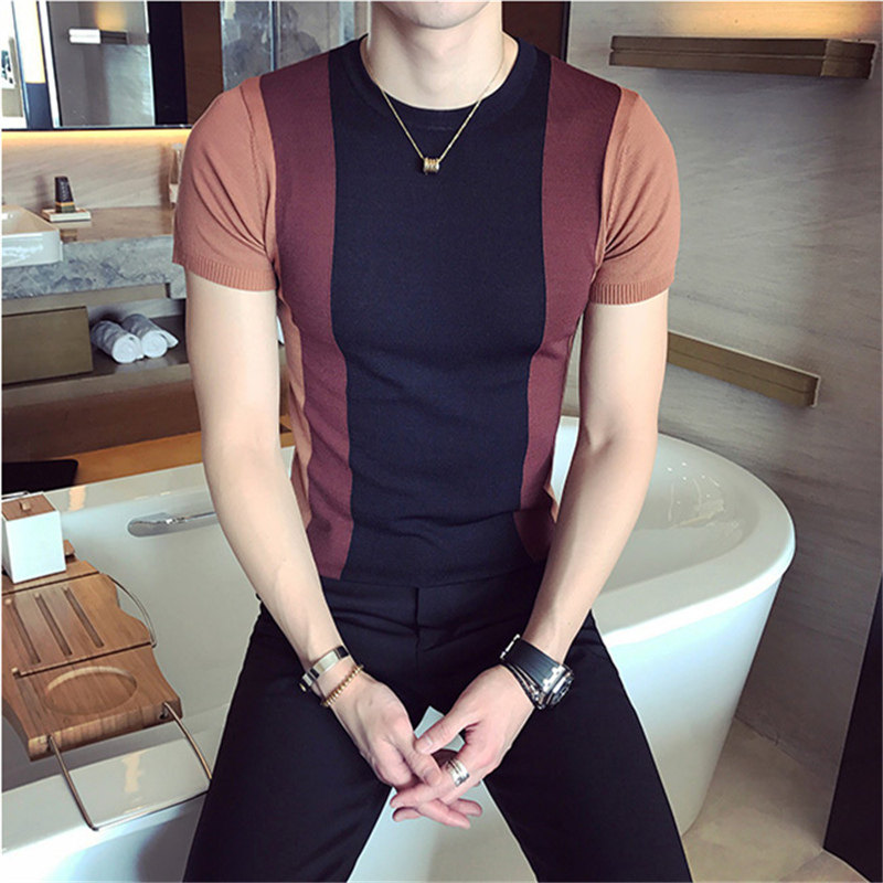 High-end men's ice silk T-shirt sweater short-sleeved summer thin section ice-cold breathable color-blocking slim men's T-shirt tee
