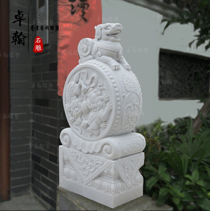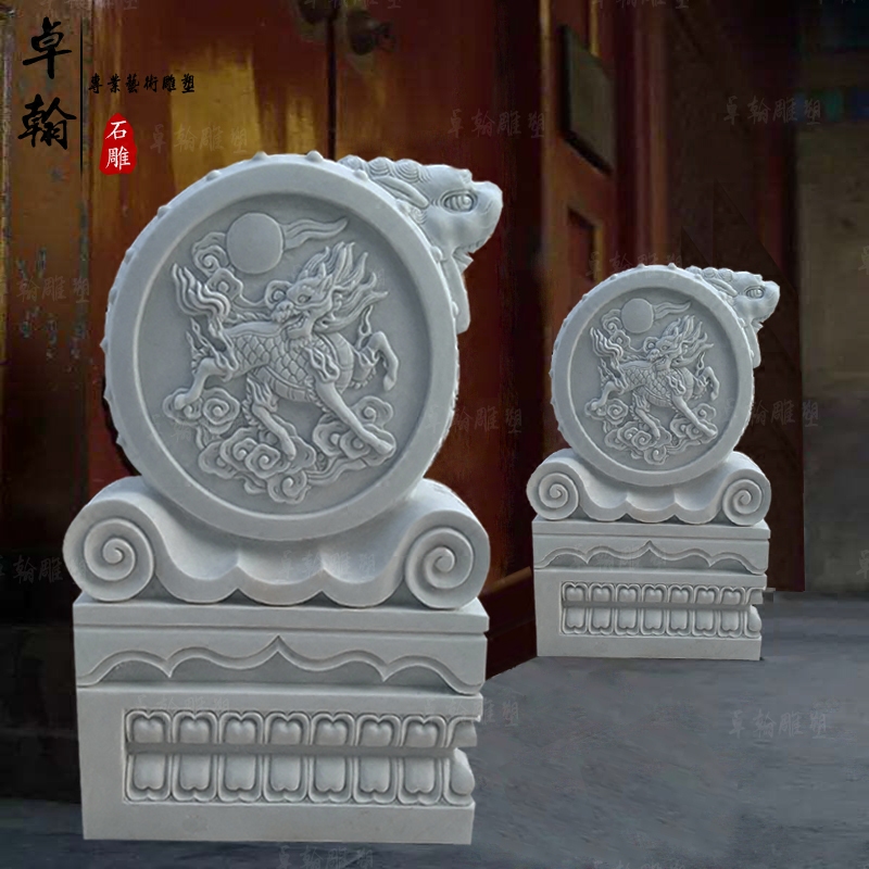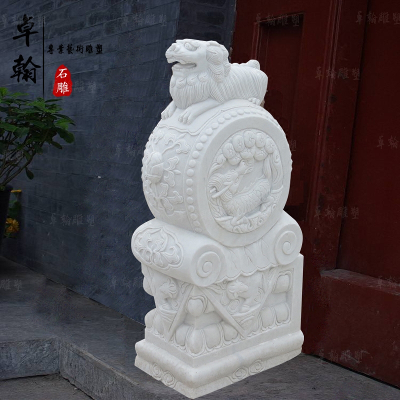 Stone carving lemn door pier a pair of natural Han white jade bouquets courtyard Town mansion with a collection of green stone imitation ancient hug boulder