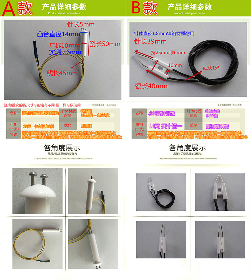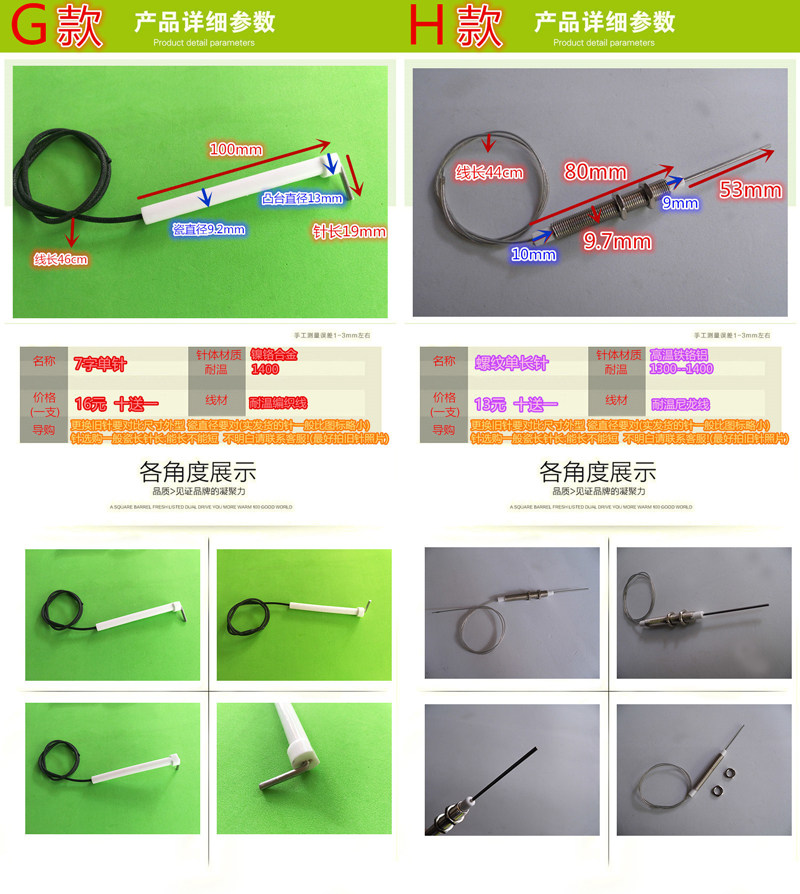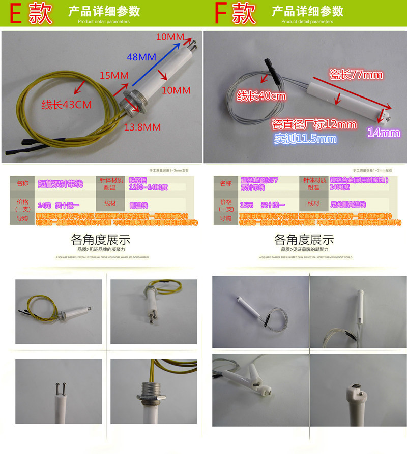 Commercial large stove head accessories, fuel gas, single and double needle wire, ceramic ignition needle, fire, holding more than three