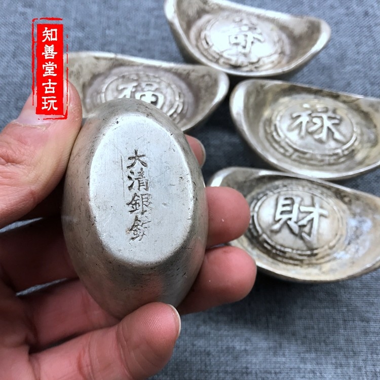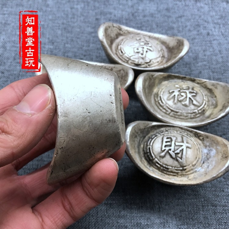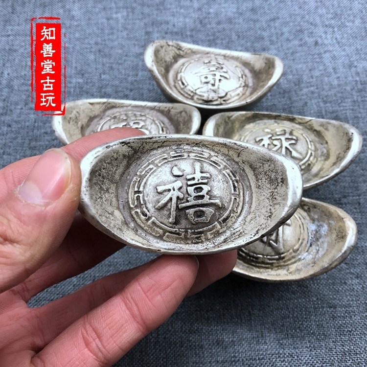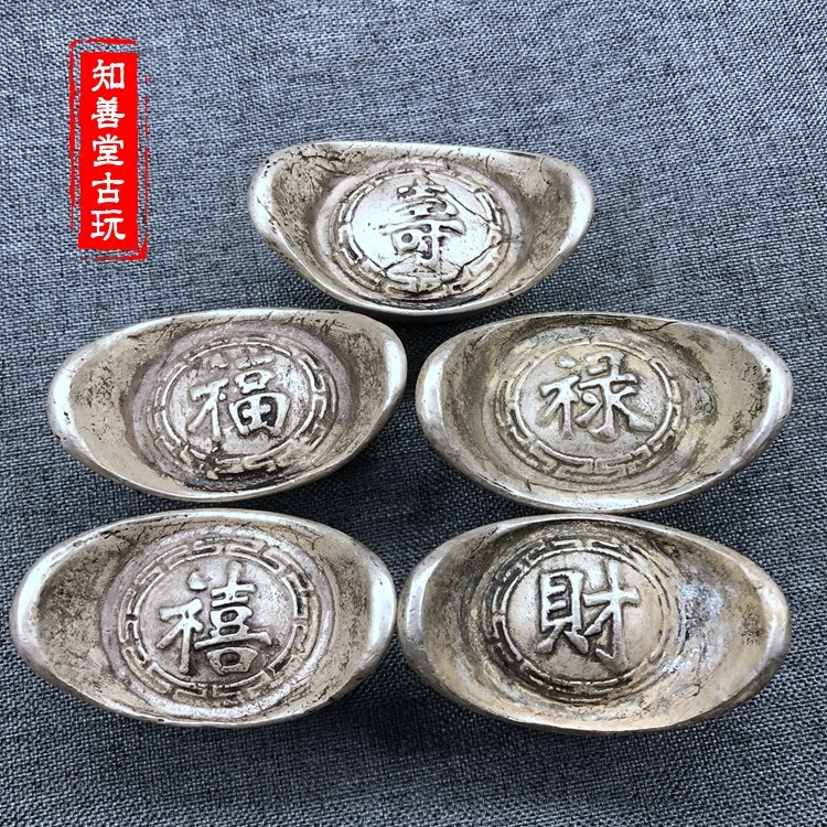Antique antique Miscellaneous silver dollar Copper money Collection Antique white bronze gilt silver Fu Lu Shouxi wealth silver ingot ingot ornaments