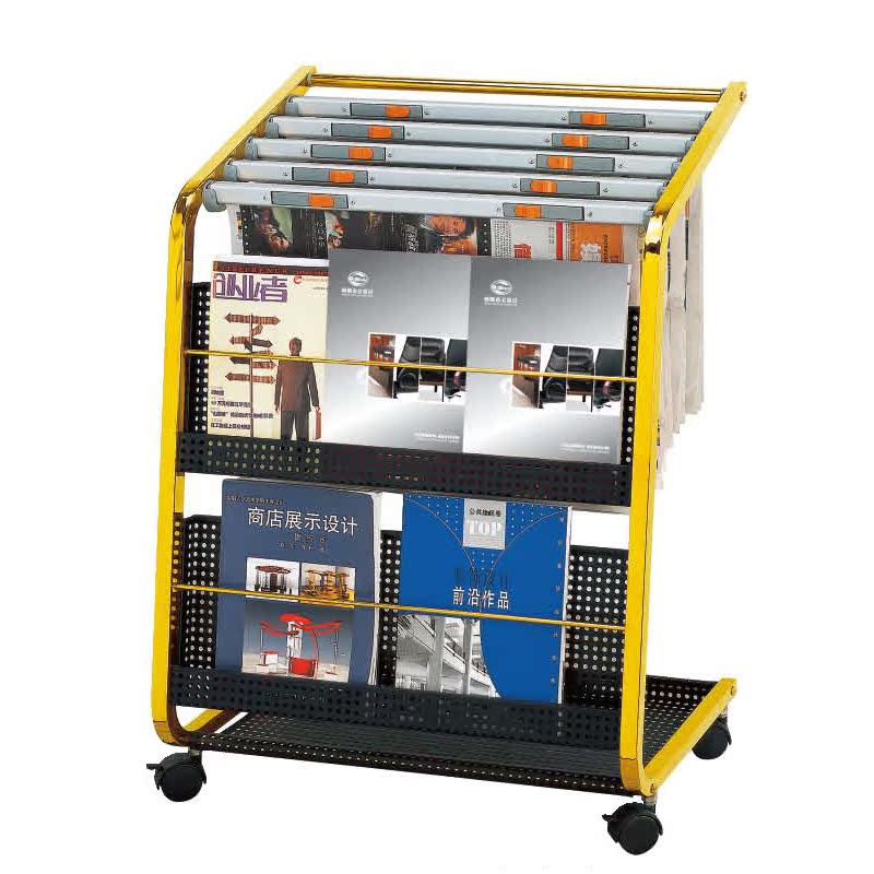 Multiple layers display material shelf display shelf office document containing shelf black gold press shelf floor mobile newspaper shelf