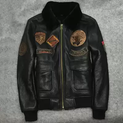 New male original pure sheepskin wool one leather jacket G1 flight jacket leather sheep cutting fur thickened