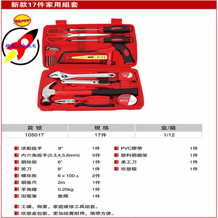 Hong Kong Shandong Endurance Tool New 17 Pieces Home Combination Suit 105017 Home Tool Suit