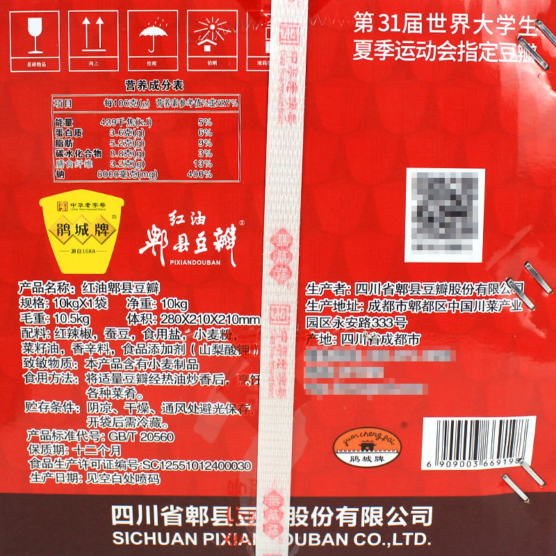 Cuckoo City card Red oil pi County Bean Petal 10kg20 Sichuan Sichuan Vegetable Bean Petal Middle Dining Hot Pot Catering