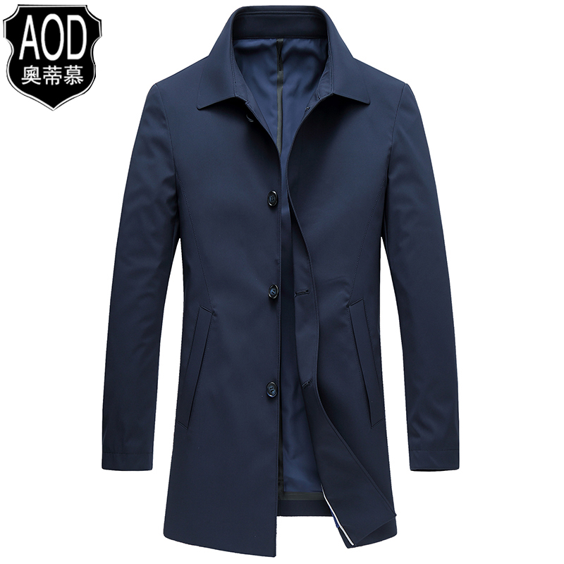 2021 spring new middle-aged men's windbreaker medium and long version of business casual men's lapel solid color thin jacket men
