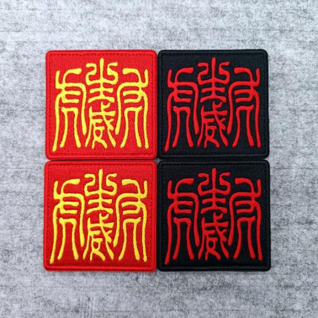 Round cloth with Chinese characters Calligraphy Embroidery Arm Chapters Patriotism Warriors Magic Sticker Dragon Bead Series Badges Chinese Patches