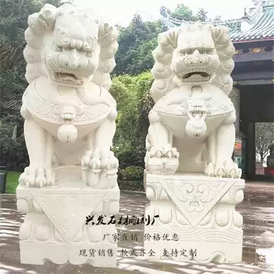 Large and small stone carving stone lions A pair of marble household janitor town house lucky entrance cemetery decoration stone lions