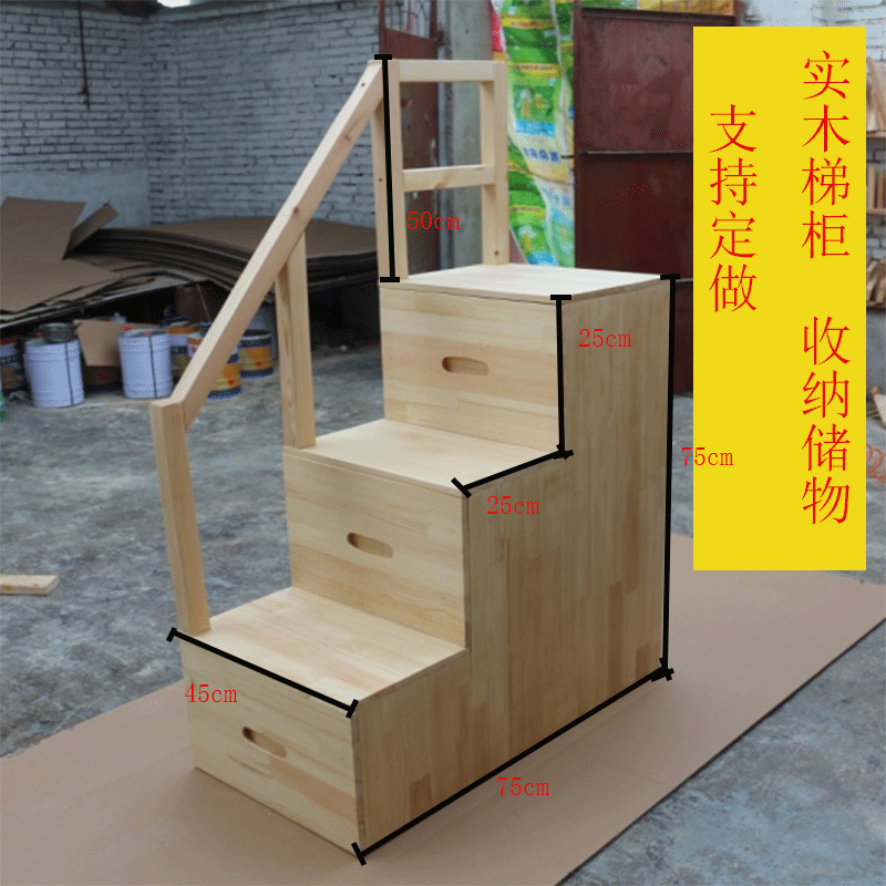 Home storage ladder cabinet attic stairs solid wood climbing ladder drawer storage box cabinet with handrails up and down bunk straight ladder