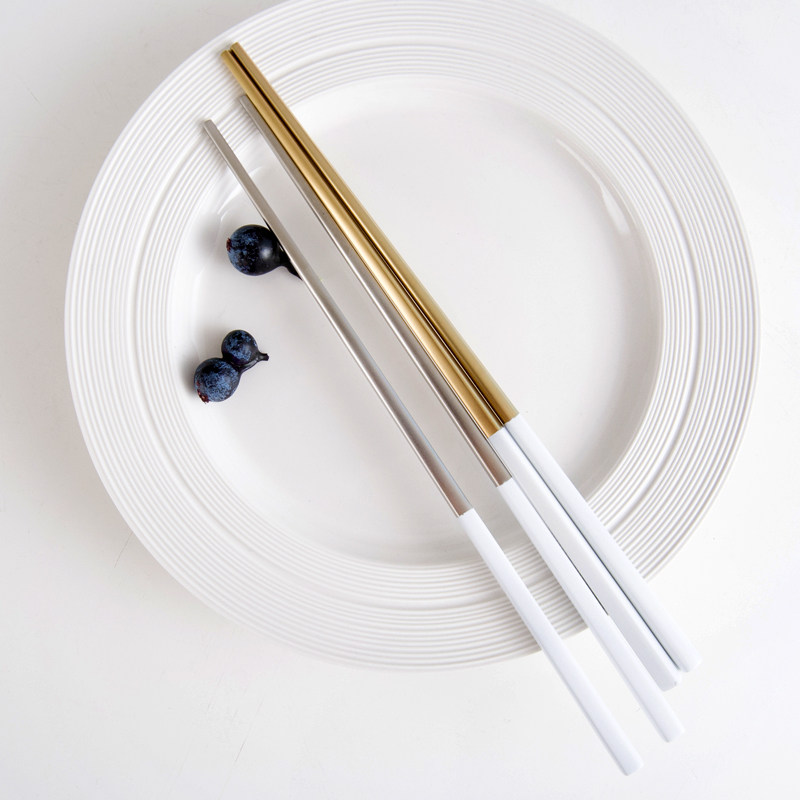 Portugal Wire Drawing 304 Stainless Steel Chopsticks Home Creative Square Chopsticks Adult Children Non-slip Upscale Chopsticks