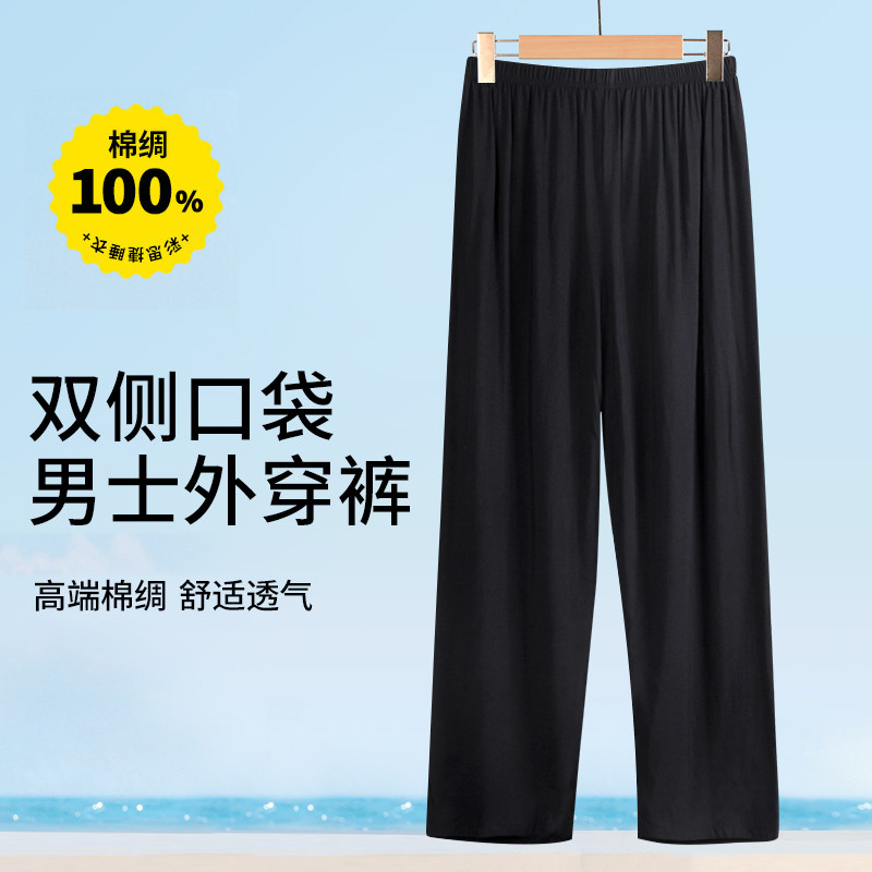 Men's summer and autumn wear two-pocket trousers, pajama pants, rayon cotton silk pants, cotton silk pants, home pants, plus fat and enlarged