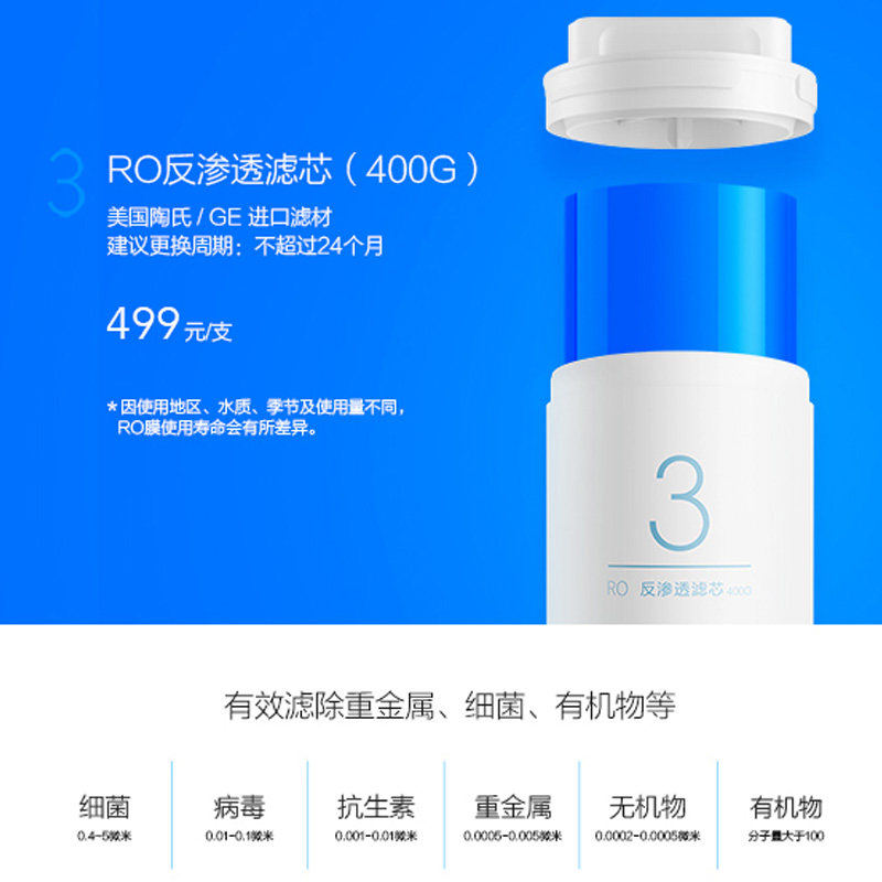 Xiaomi Water Purifier Filter filter No. 1 PP Cotton 2 Number of front 3 RO reverse osmosis 4 Number of rear kitchen Formula 400G600G