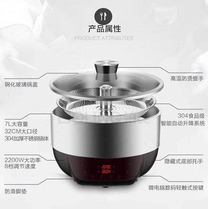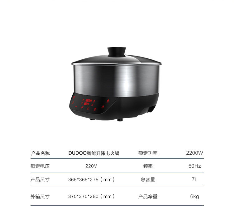 DUDOO Multifunction Smart Lifting Cuisine Pan Large Capacity Cooking Saucepan Food Grade 304 Stainless Steel Electric Hot Pot-Taobao