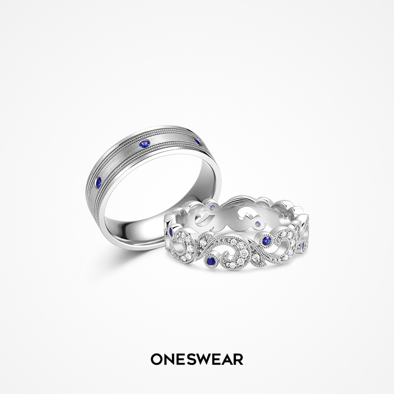The Sanskrit ONESWEAR loves the infinite meritocratic 18K golden couple against the ring elegant Sapphire Platinum Wedding Ring