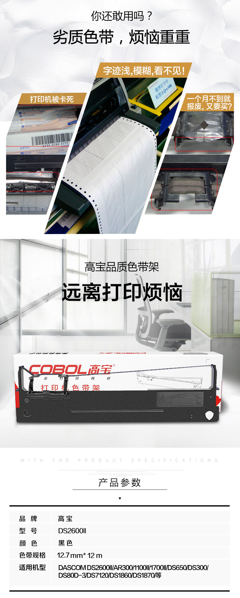 cobol high treasure is suitable for real DS2600II AR300 AR550 dot matrix printer ribbon rack with core
