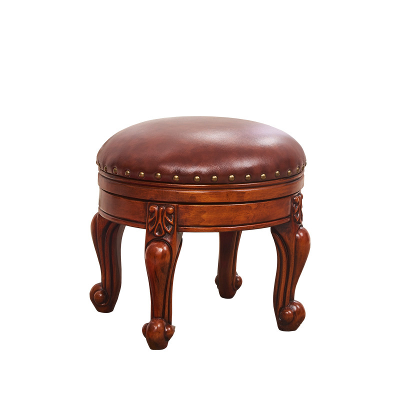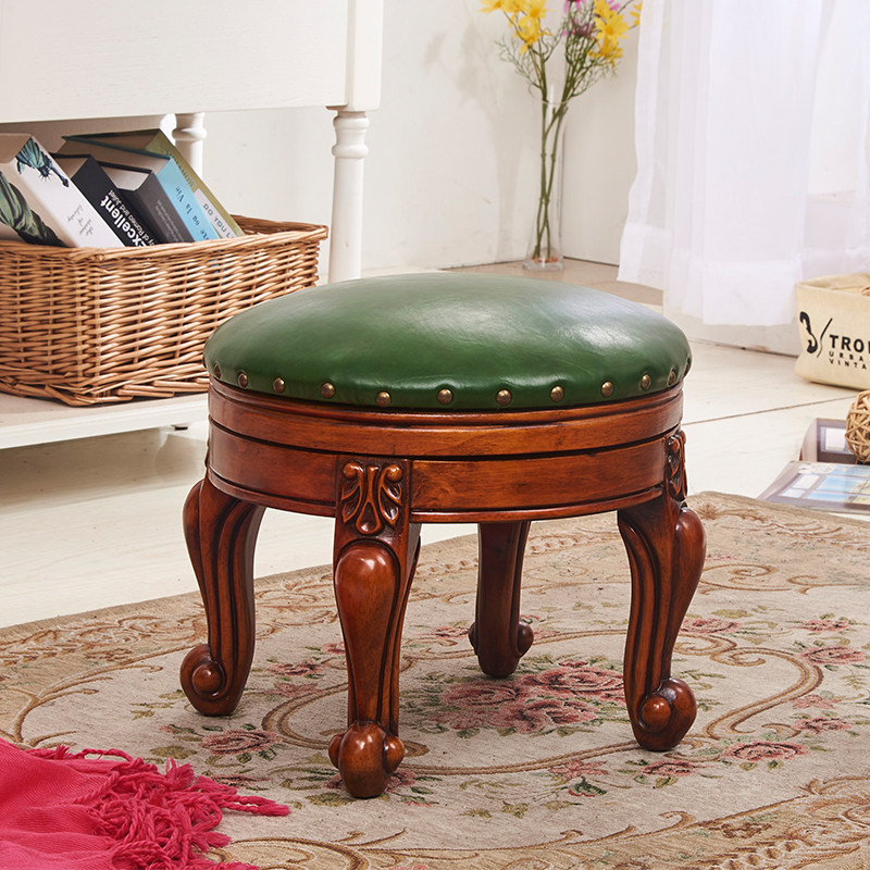 American-style solid wood leather small round stool rotating stool backrest small stool home creative living room low stool coffee table stool