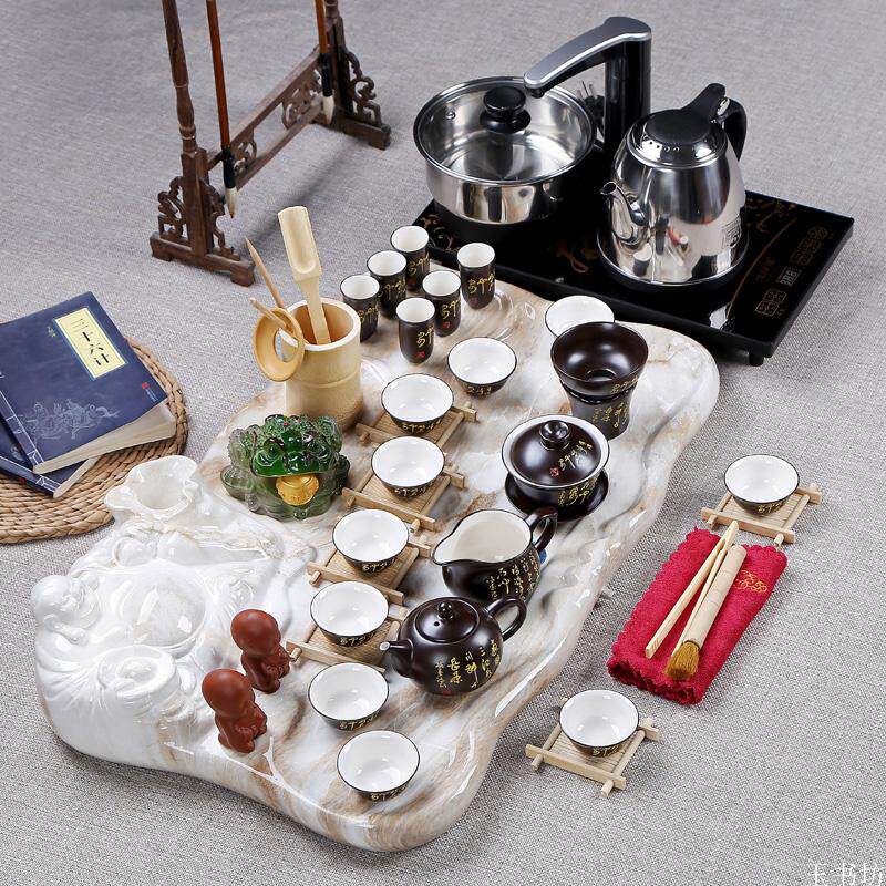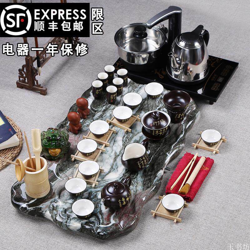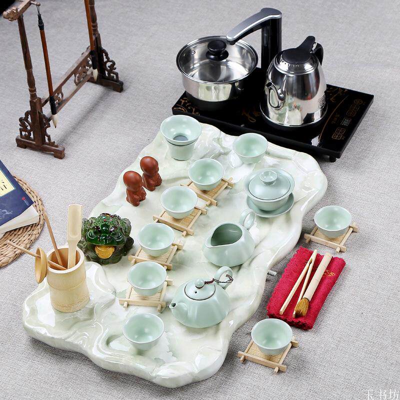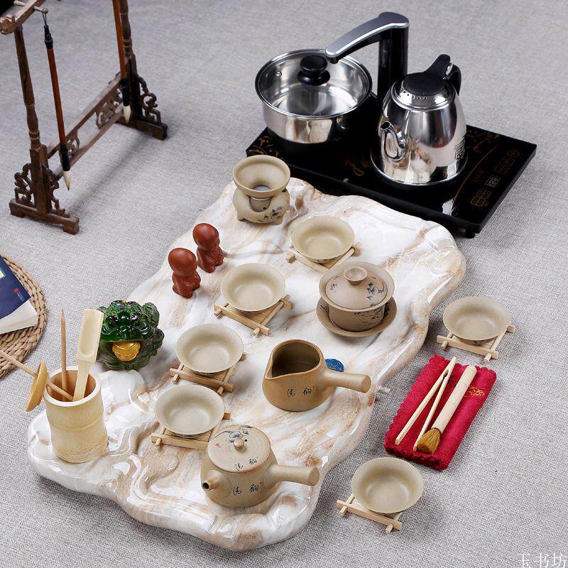Imitation Jade Gongfu tea set Household stone tea table Four-in-one induction cooker Imitation Marble tea ceremony tea tray Tea tray