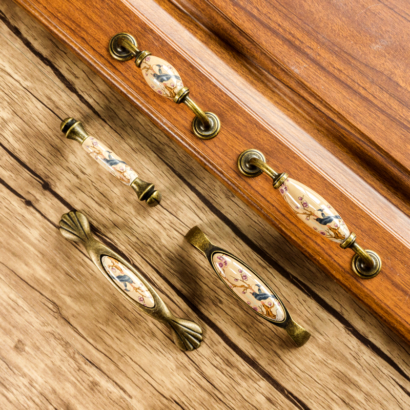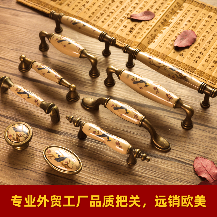 New Chinese American European vintage antique ceramic solid wood wardrobe door cabinet cabinet drawer door handle small handle