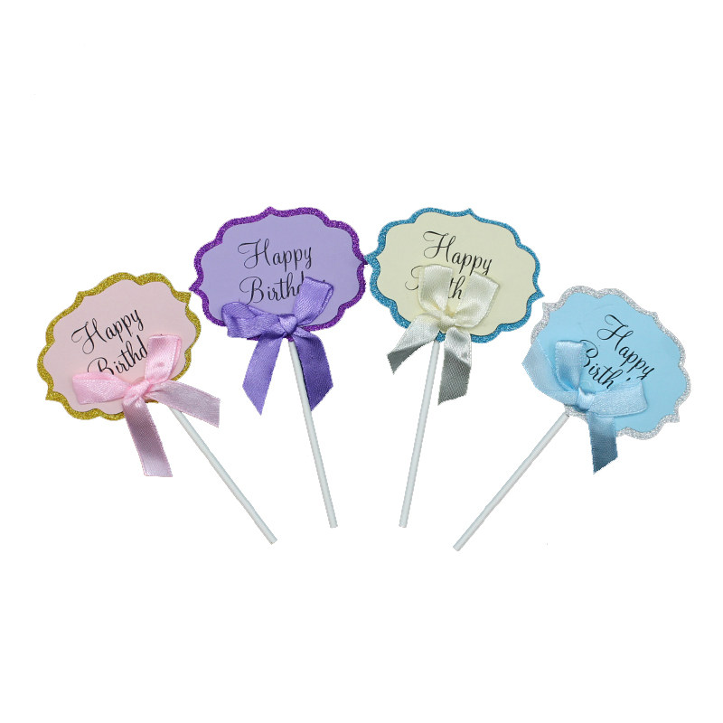 Pink blue blank insert card writing blessing card bowknot plug-in happy birthday theme cake decoration