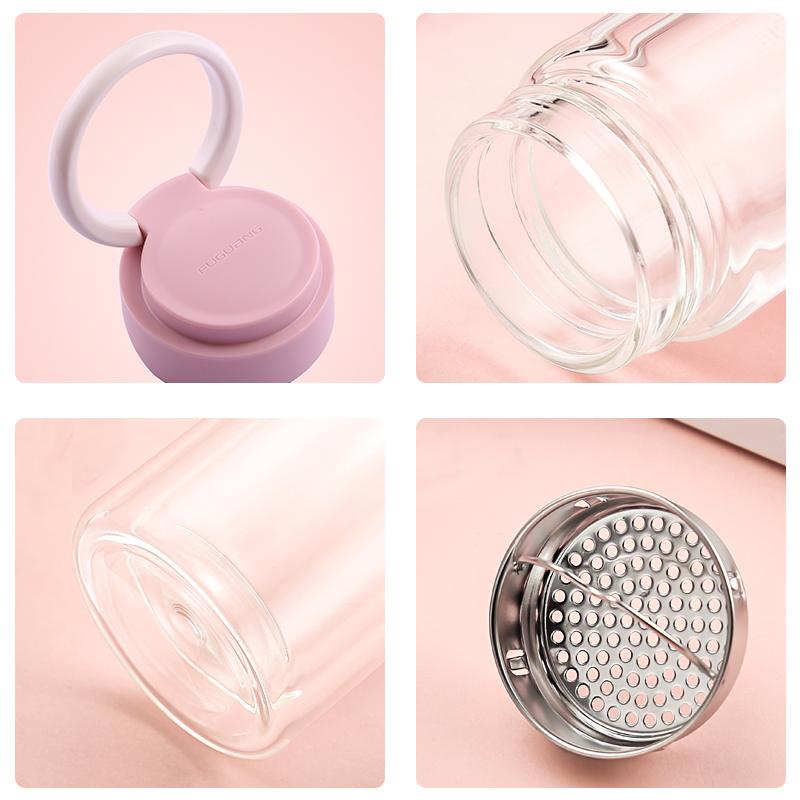 Rich light double glazed cup ladies portable heat resistant tea septer tea septea separation cup personal special with hand water cup