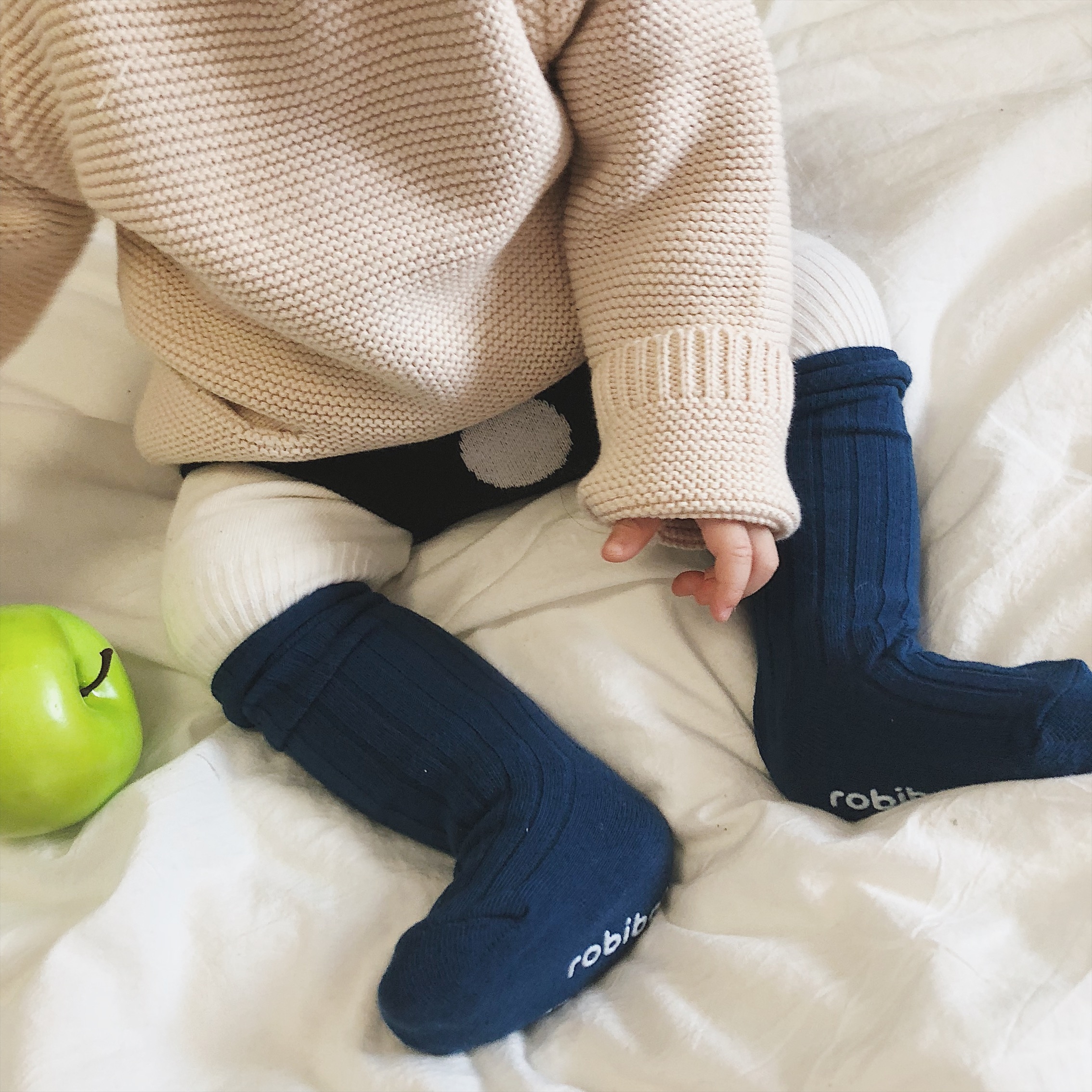 Korea ins and children socks elastic pure color pine high cylinder with rubber bottom non-slip floor male and female baby middle cylinder socks