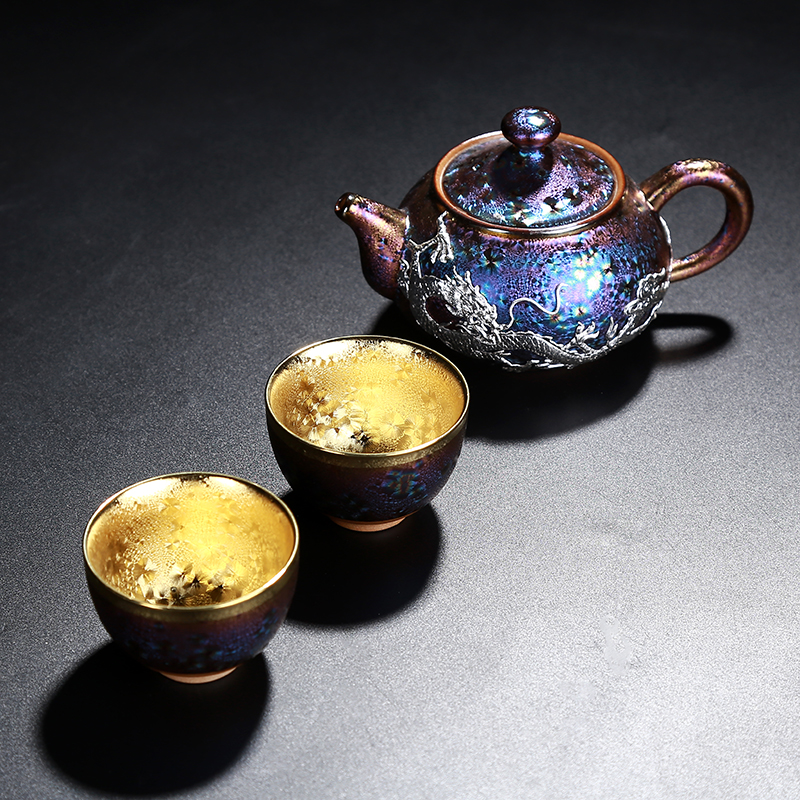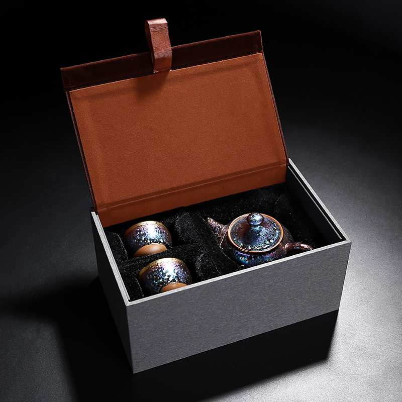 Kiln Change Seven Color Sky Mesh Glaze A Pot Two Cups Portable Travel Ceramic Teapot Teapot Teapot Kongfu Tea Furniture