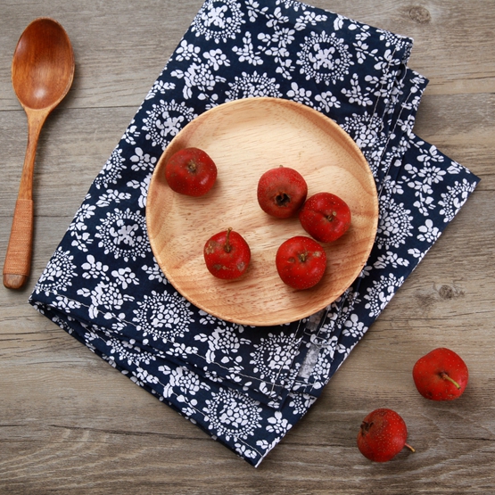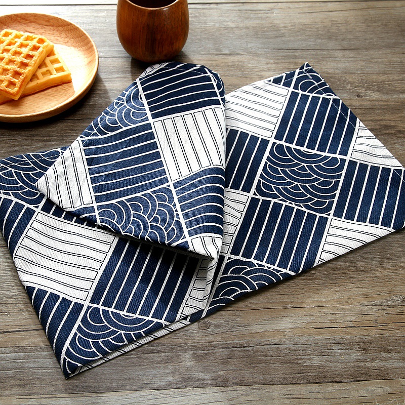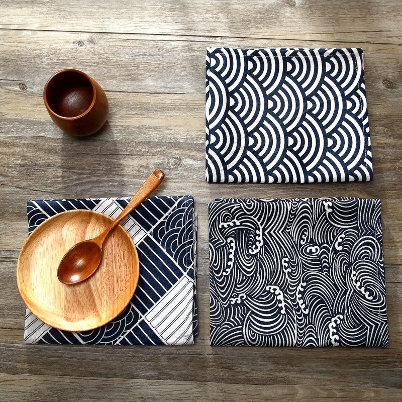 Square tattooed napkin large wavy napkin with small wave tattooed napkins Blue Flower Cloth Napkins New Blue Blossom Cloth 5 Pieces Of Napkins Combined Oak Plates Woody Cups Big Tangled Spoon