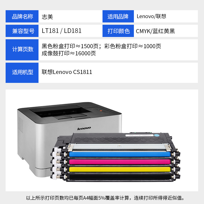 Apply Lenovo LT181M red (powder box chip) applicable Lenovo LT181Y yellow (powder box chip) applicable Lenovo LT181C blue (powder box chip)