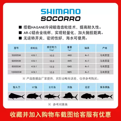 SHIMANO SHIMANO SOCORRO SW Reel Sea fishing boat Fishing iron plate Big thing Giant fishing reel Fishing reel