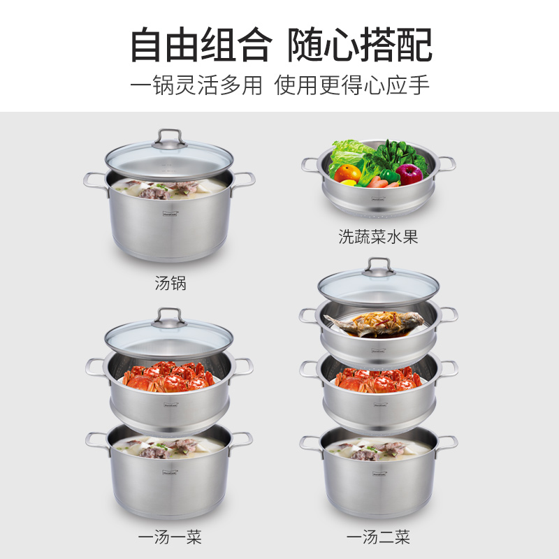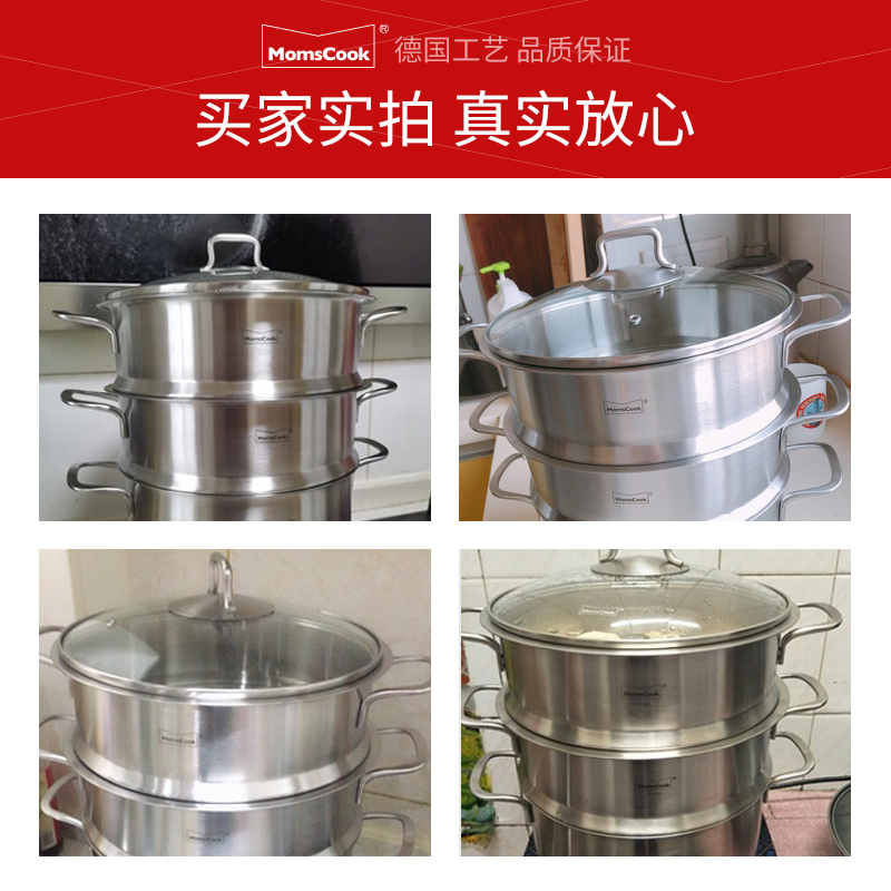 Momscook Mu kitchen steamer 304 stainless steel three-layer thickened 2-layer steamer double-layer household induction cooker universal