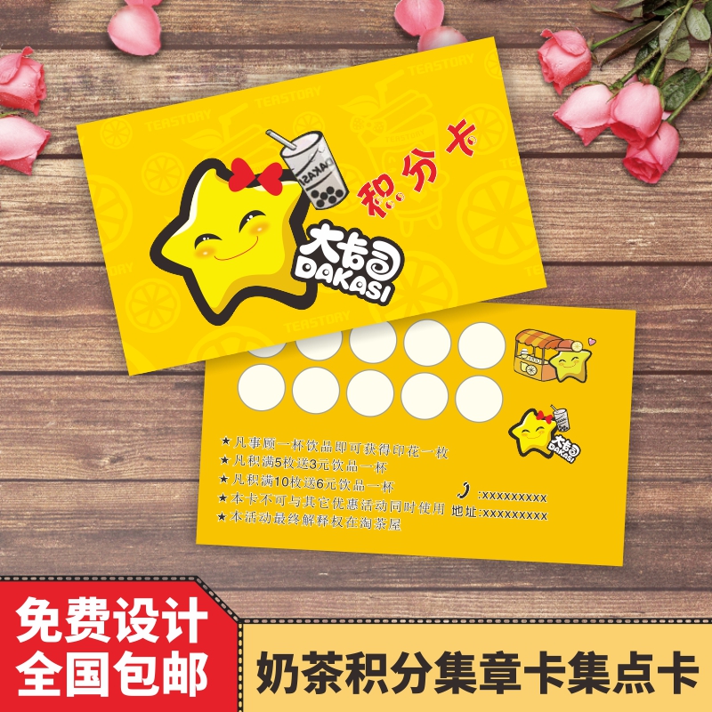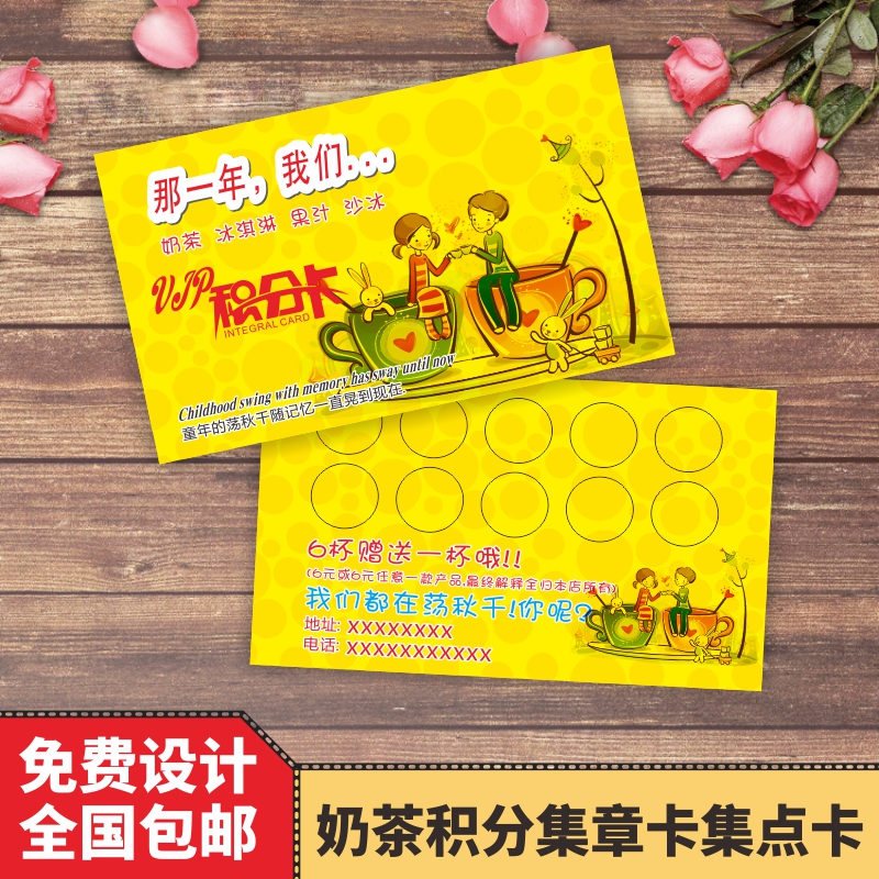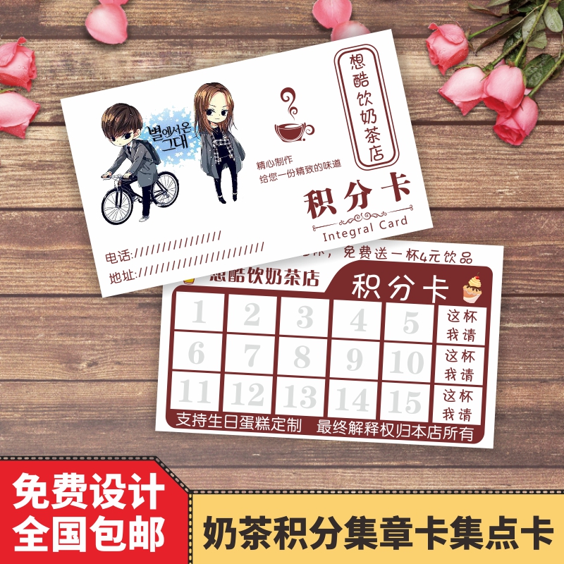 Milk Tea Drinks Store Points Card Collection Cups Folio Cards Printed Set Seals Printed Water Bar number of cards Design of cards Design