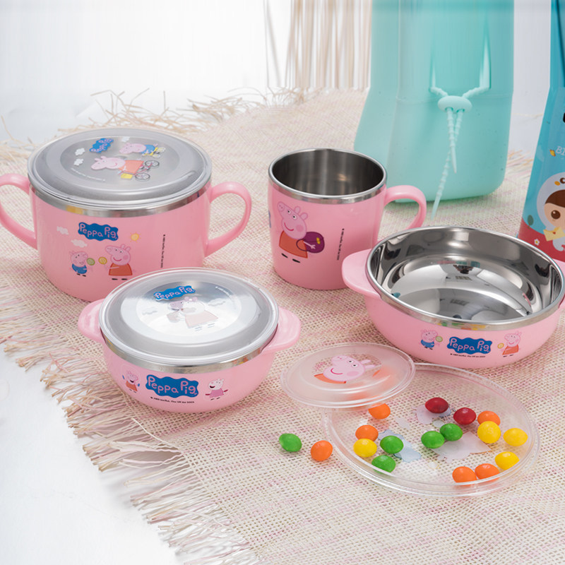 Tefogo High Piggy Petch 304 Stainless Steel Children Double Ear Small Bowl With Lid Anti-Fall Home Handle Cute Dining Bowl