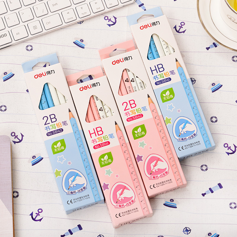 Deli 2 boxes with ruler pencil Primary school students children triangle rod pencil wholesale hb 2b pencil
