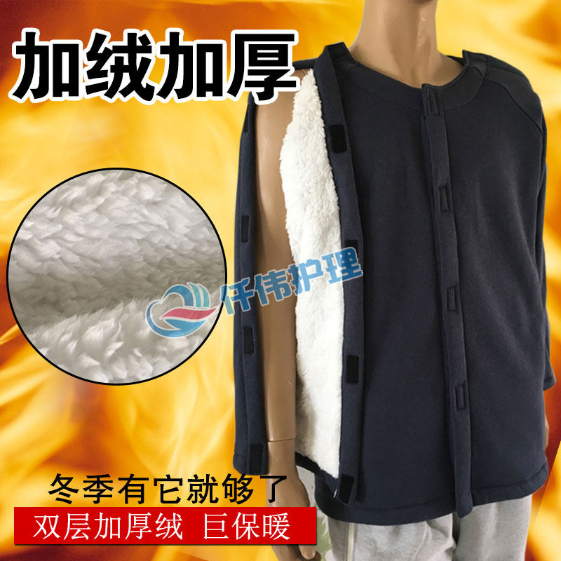 Arm fracture clothes male winter plus velvet surgery patient clothes acupuncture physiotherapy stroke hemiplegia elderly easy to wear and take off cotton clothes