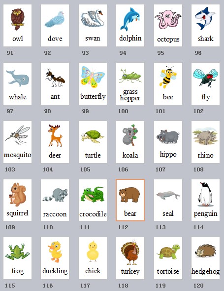 (Animals) Children's English Word Learning Big Card Game Flash Card Color Pattern Shellfish Seal Teacher's Teaching Aids