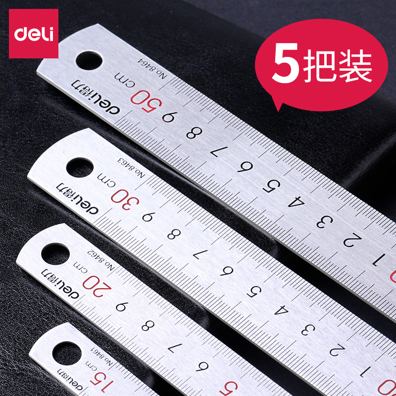 Deli Steel Ruler Metal Stainless Steel Ruler Thick Ruler Office Tools 15cm 20cm 30cm 50cm