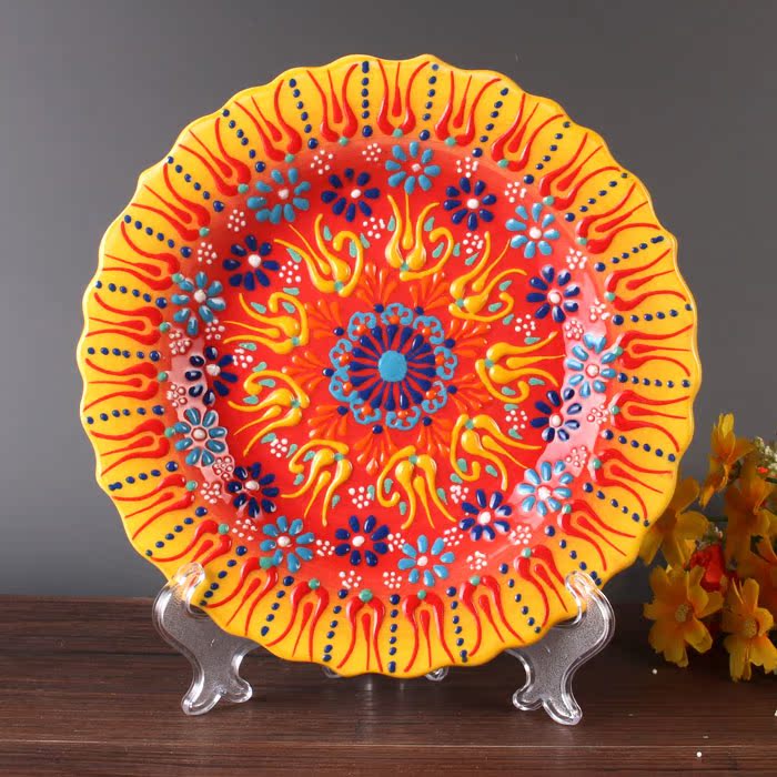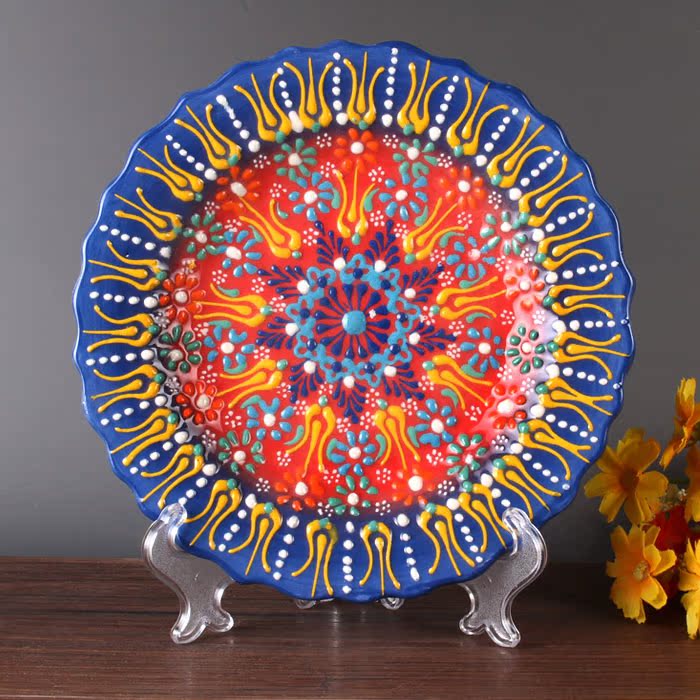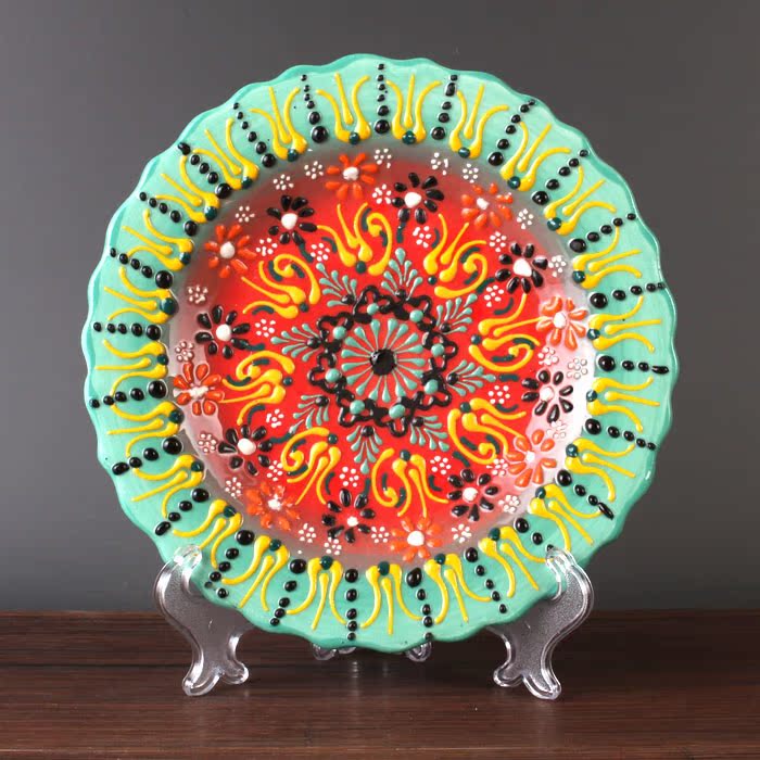 Turkey made imported decorations Hand painted ceramic plate hanging plate pendulum plate 18cm Ottoman European style handmade plate
