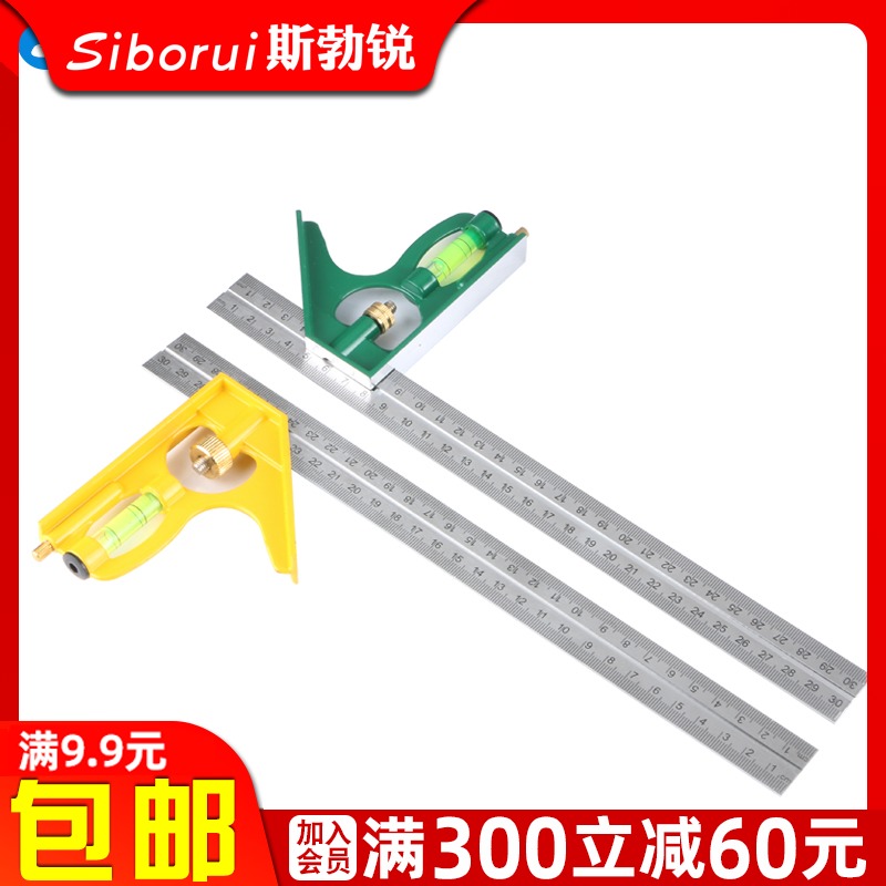 Stainless steel turning ruler Multi-function combination angle ruler 90 degrees right angle ruler Protractor 45 degrees moving angle ruler Woodworking ruler