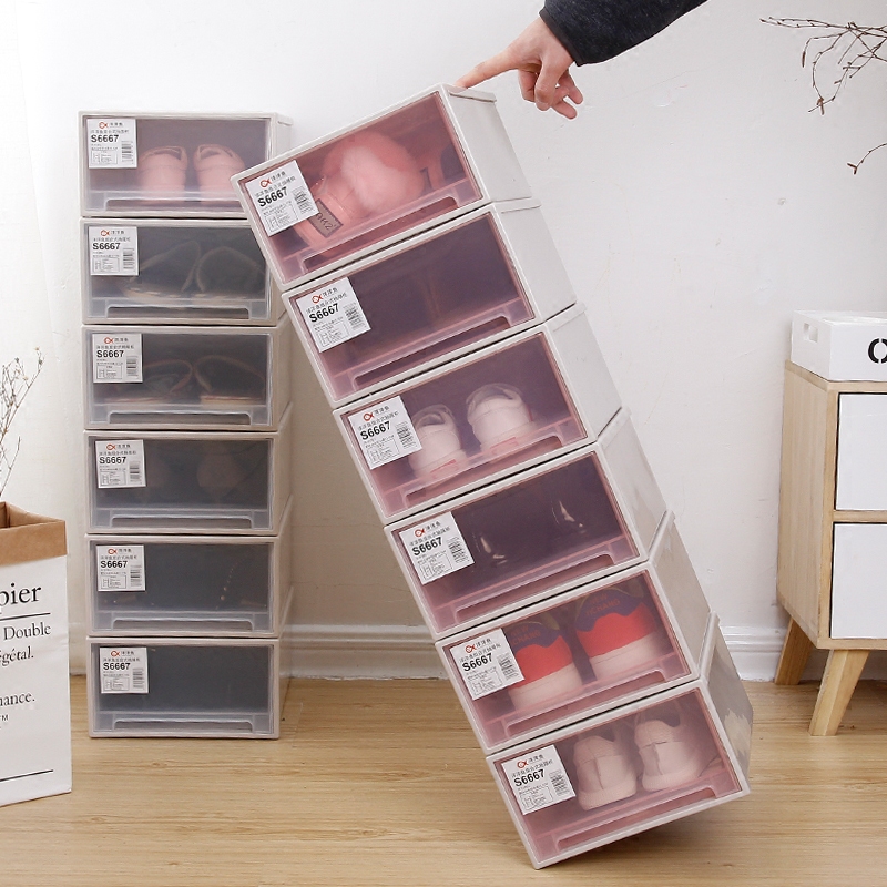 Thickened Shoe Box Drawer-Type Plastic Free Combination Male And Female Shoes Containing Box Transparent Dust Finishing Case Free Of Assembly
