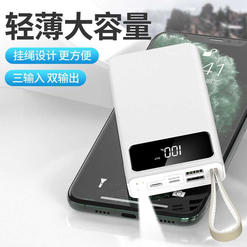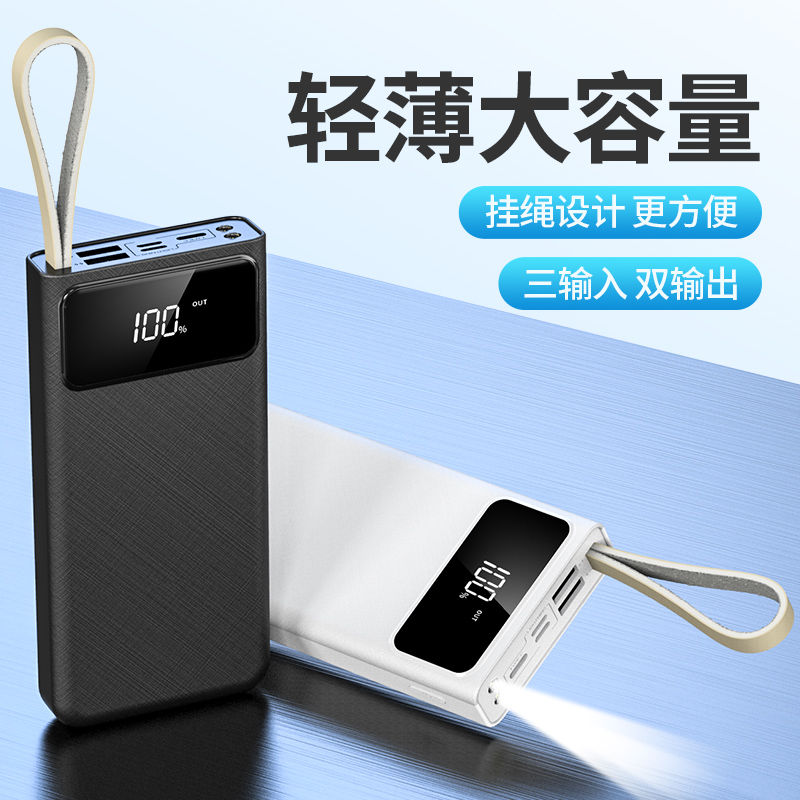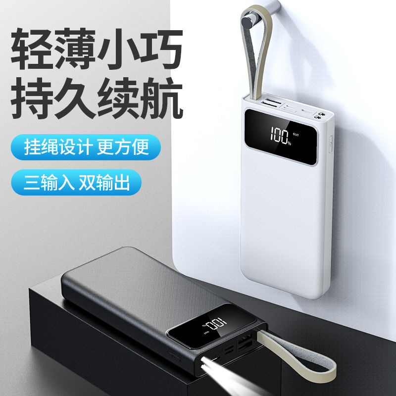Mobile phone charging treasure 20000 mAh comes with lanyard Android Apple mobile phone universal large-capacity mobile power supply