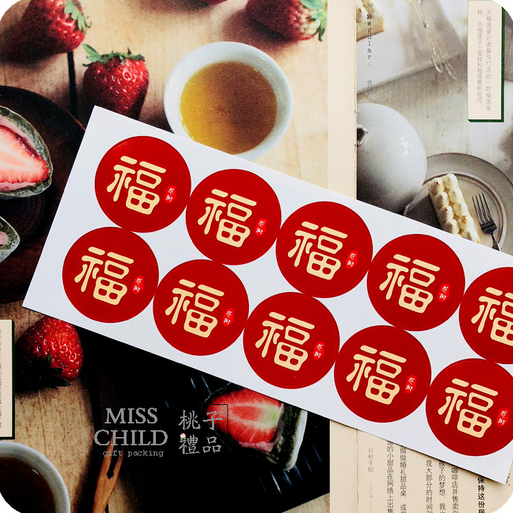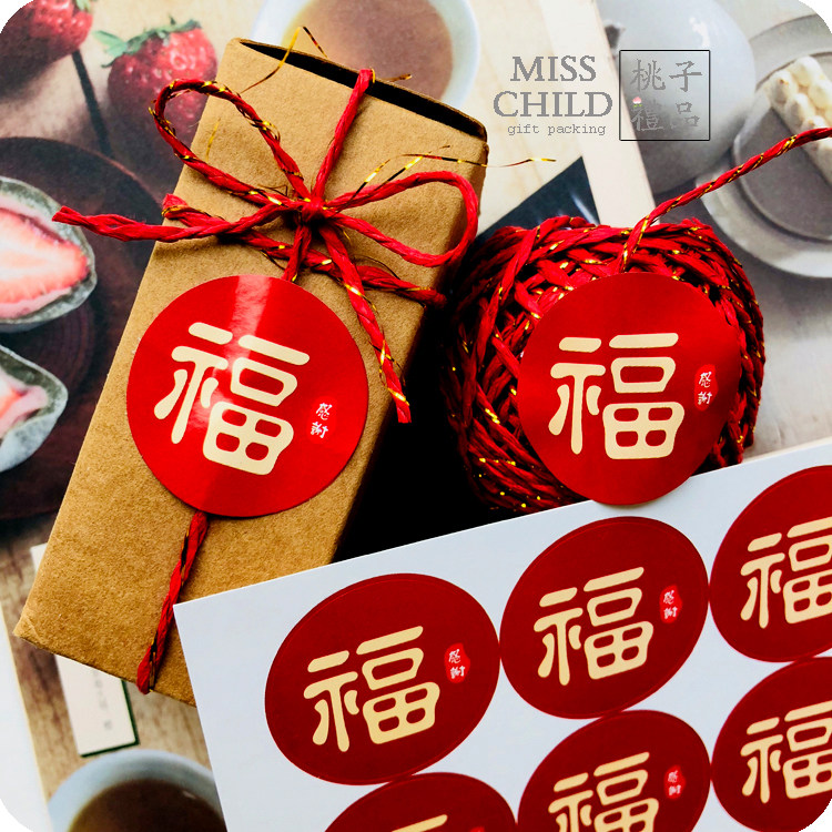 New Year blessing word thank you sticker Wine Red Blessing Word Chinese Blessing Sticker Sealing sticker Gift Bag decorative Sticker