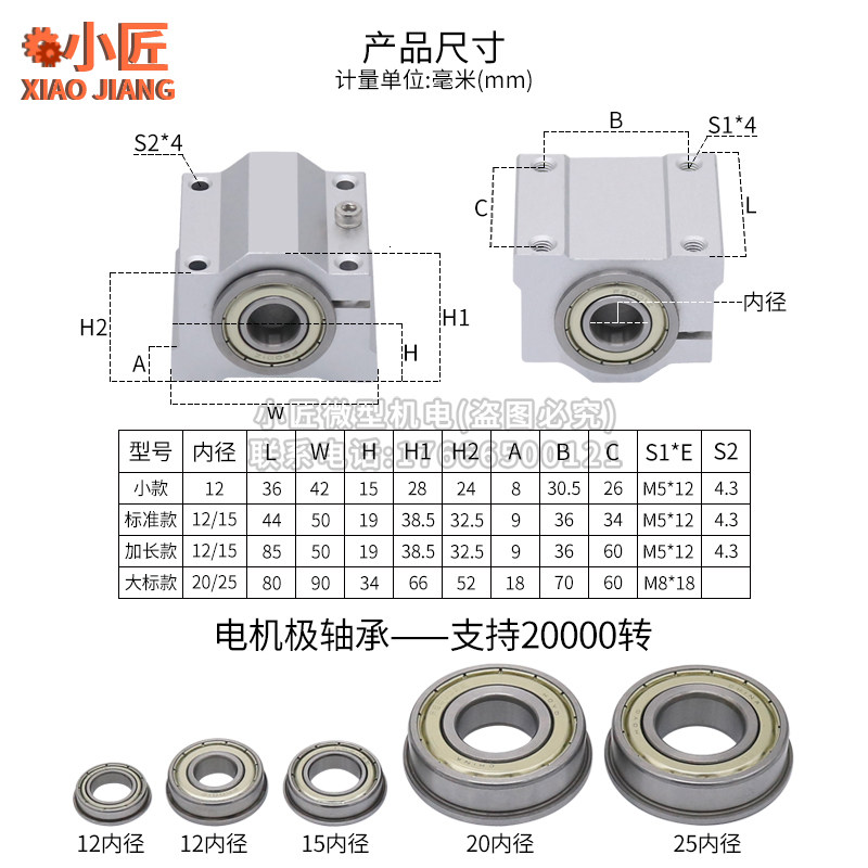 Spindle seat shell (small model) 12 inner diameter bearing spindle seat shell (standard model) 12 inner diameter bearing spindle seat shell (standard model) 15 inner diameter bearing spindle seat shell (large standard model) 20