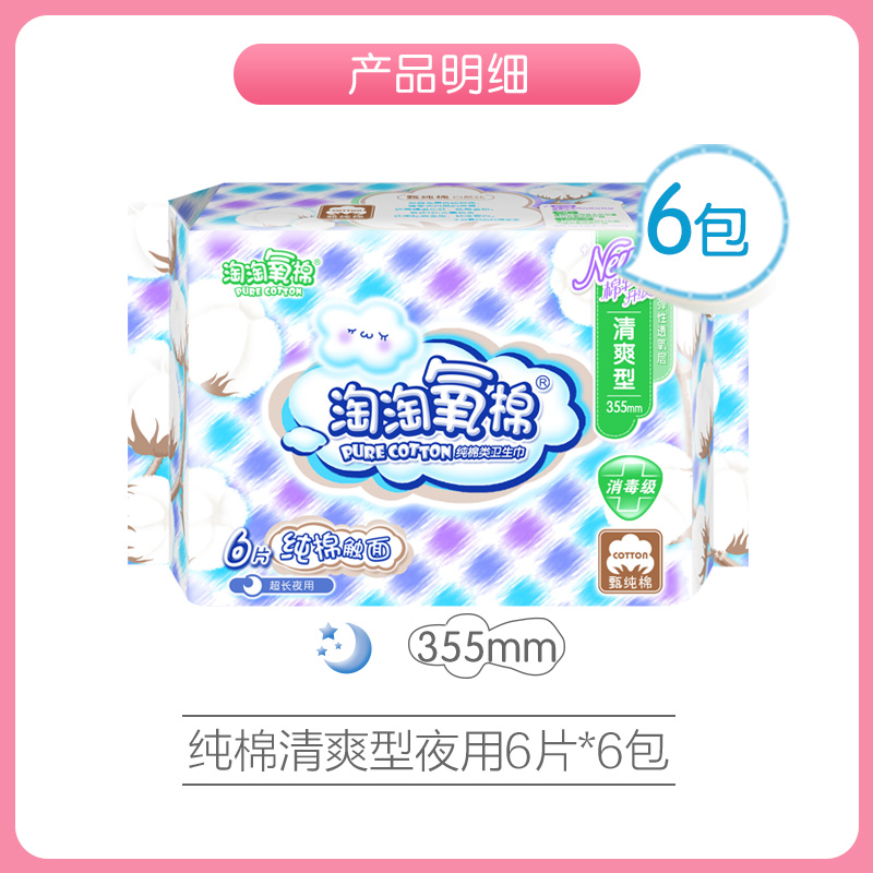 Naughty Oxygen Cotton Tampon Cotton Lady Whole Box Pure Cotton Cool 355mm Super Long Night Use Aunt Towel Composition 6 Pack 36 Pieces Fit