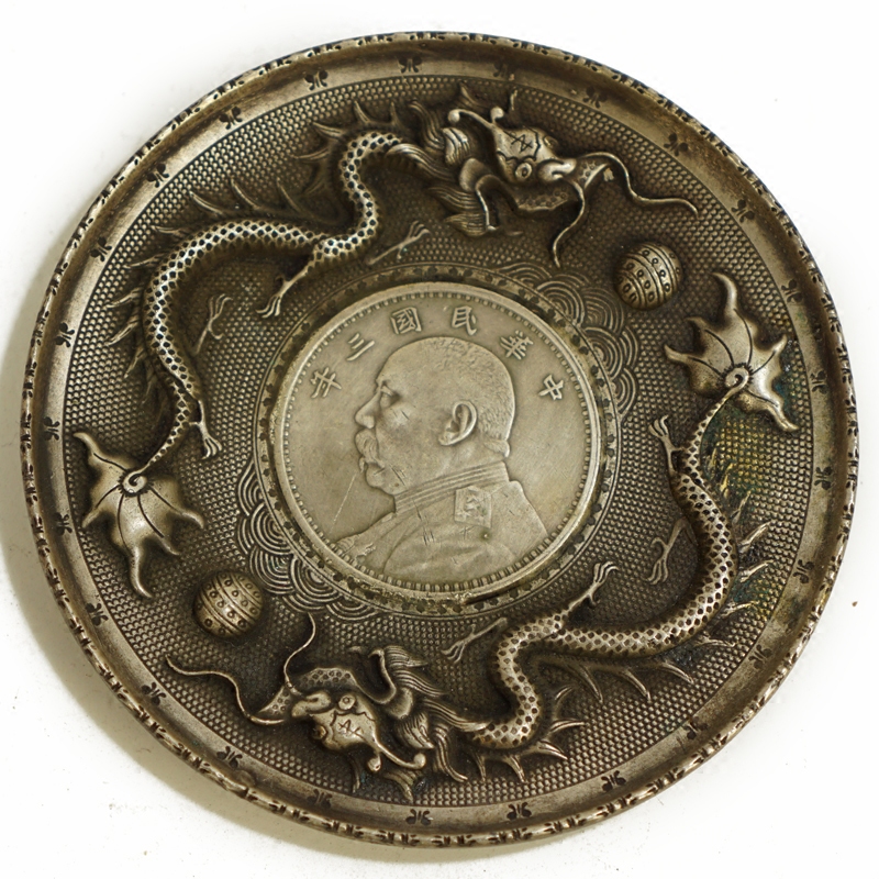 Ancient Play Miscellaneous Collection Antique Bronze Ware Twin Dragon Drama Pearl Dish Inside Silver Dollar Random Hair