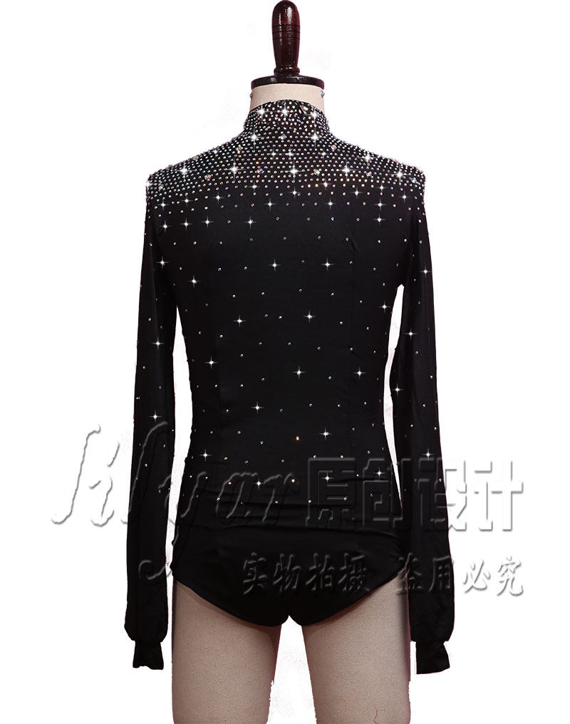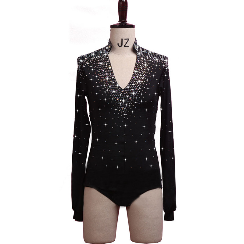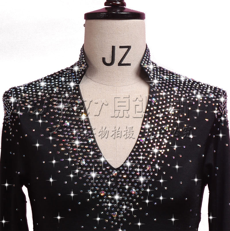Jiahuxin men Latin dance coat shows coat shirt black V-collar all body Middle East drill