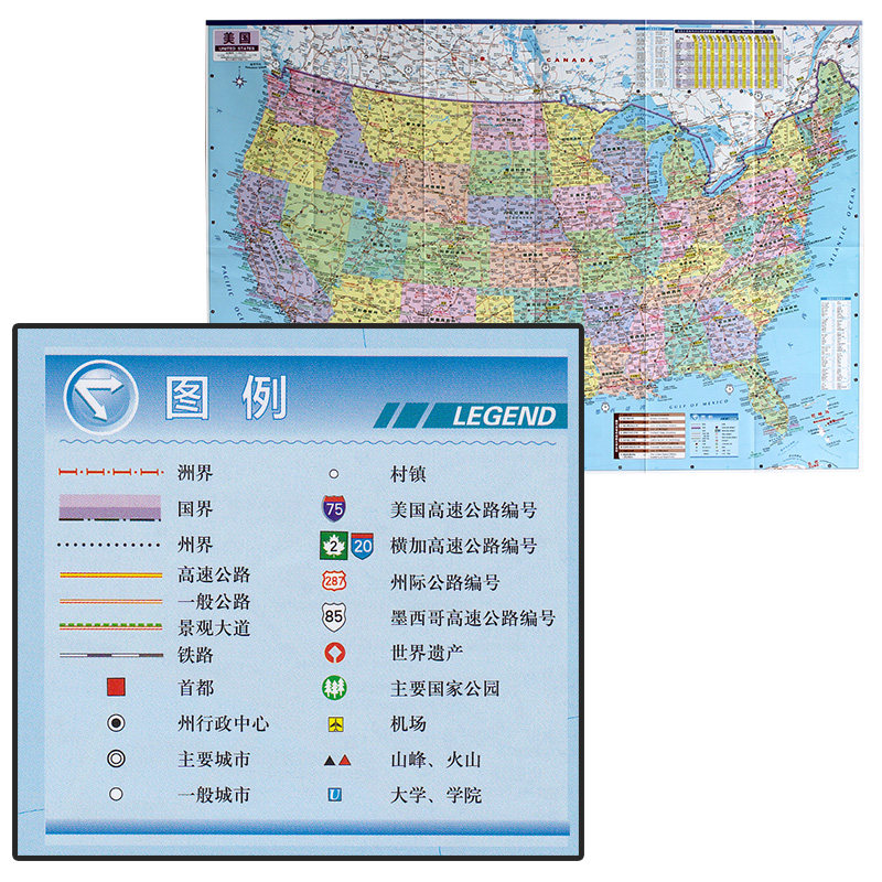 Waterproof version 2019 New US tourist Map Chinese and English version of the traffic tourist map Expansion size 86X60cm World map series Schools Major universities Location Highways
