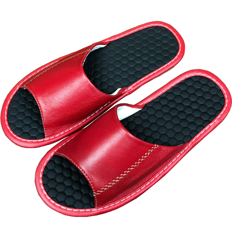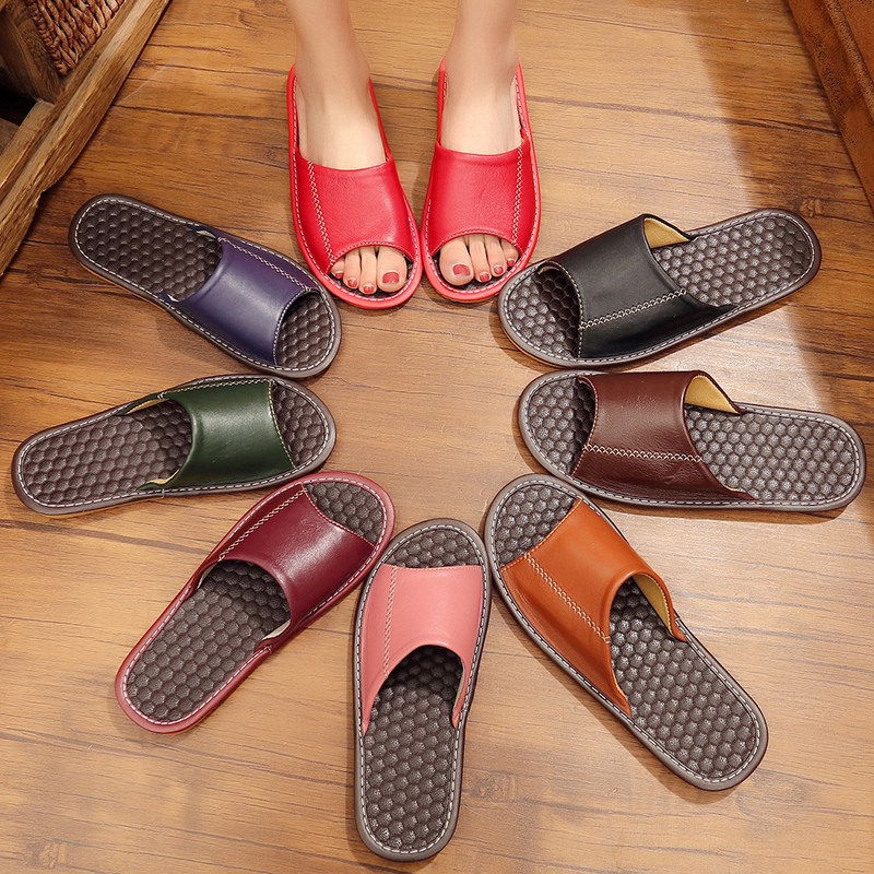 Summer leather home slippers men and women indoor wooden floor home non-slip waterproof soft bottom sheepskin sandals and slippers home