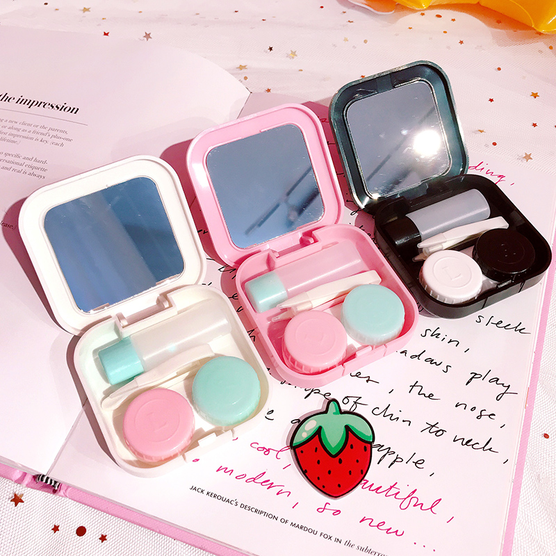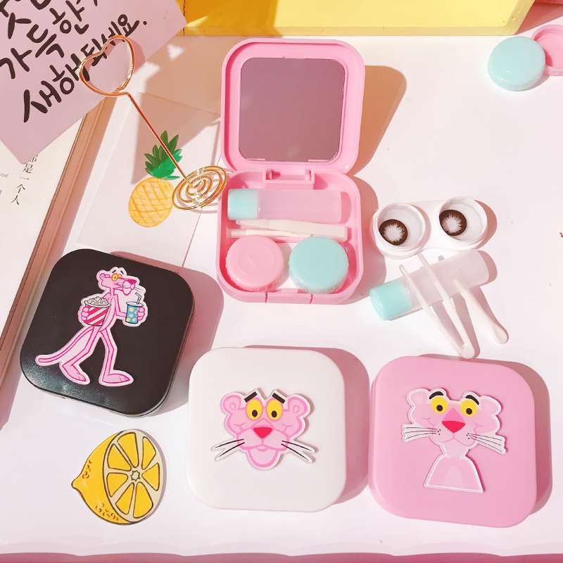 Powder Pink Adolescent Girl Contact Lens Box Silly Leopard Beauty Pupil Box Double near view eye mirror Care box portable companion box